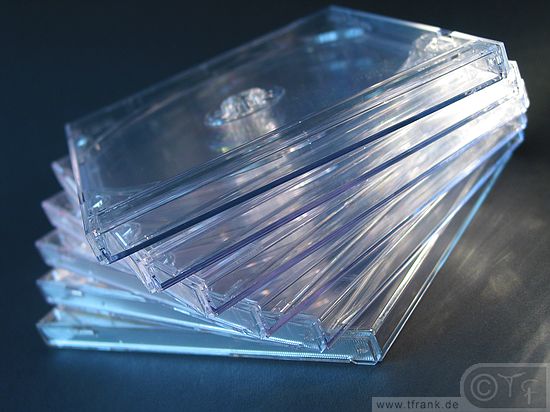 Jewelcases - CD-Hüllen bzw. Boxen: gestapelt - kühle Lichtstimmung, Lichtakzente rechts