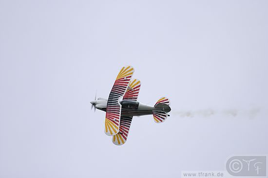 Kunstflugdarbietung einer Christen Eagle - leider bei sehr schlechtem Fotolicht, bzw. Himmelshintergrund. Am Sonntag sollte sie eigentlich noch einmal fliegen und zur anvisierten Zeit war gerade auch schöner Sonnenschein vorhanden. Leider konnte sie aber am Sonntag nicht erscheinen.