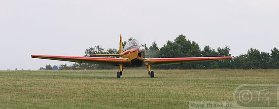 Eine Zlin 526 beim Start. Die Zlin 526 ist ein Kunstflugzeug der tschechischen Moravan-Werke. Die Baureihe existiert seit 1965. Flugplatzfest auf dem Flugplatz Betzdorf-Kirchen.