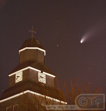 Titel: Schweifstern und Kirche | Bildnummer: 97-599 | Datum: 01.04.1997