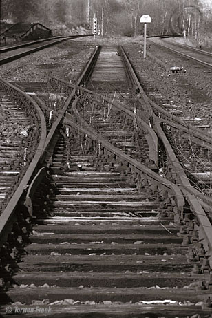 Eine nicht mehr angebundene Kreuzweiche im Bahnhof Erndtebrück